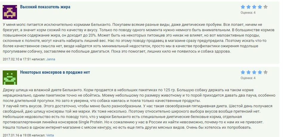 В отзывах называют питание отличным за заявленную стоимость. Состав достойный, хоть и не премиальный. Однако заводчики предупреждают, что указанные на упаковке дозы редко подходят питомцам. Активные животные не наедаются, энергии хватает только в зимний период. Корм расходуется быстро. Курица находится на первом месте, у некоторых собак на нее аллергия. Не указано происхождение мяса. Заводчикам не нравится количество пшеницы, а сверху еще и рис.