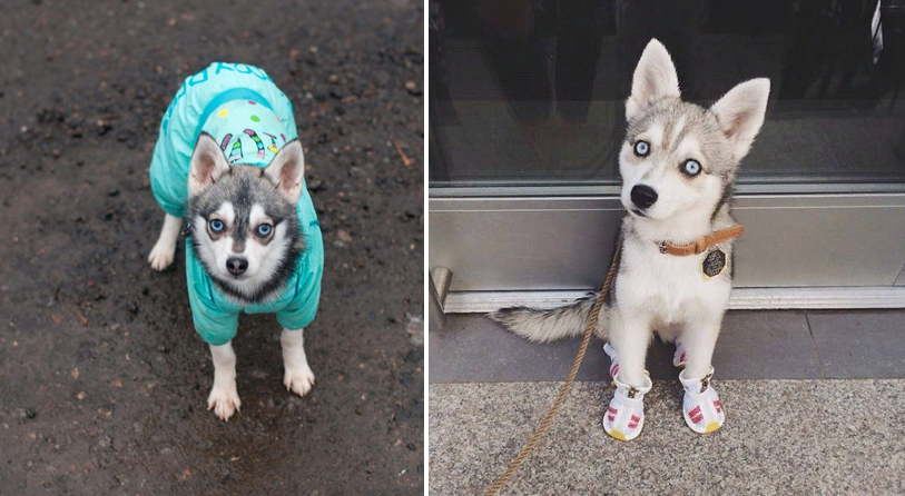 В одежде для прогулок кли-кай, в принципе, не нуждается – он потомок северных пород, приспособленных к выживанию на севере. Однако при желании владельца можно приобрести ему, например, непромокаемый комбинезон на осень – это убережет шерсть от грязи.