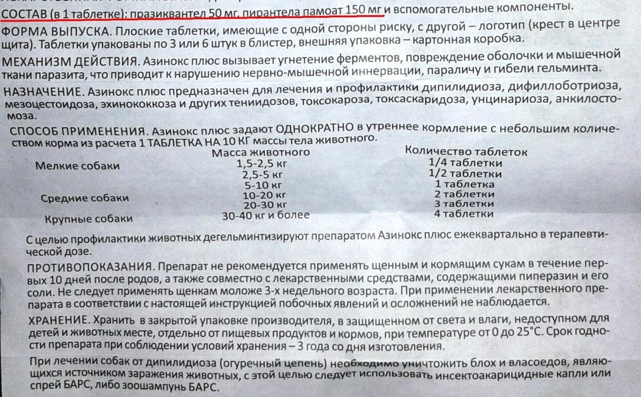 Инструкция по применению Азинокс плюс для собак: противопоказания и дозировка препарата