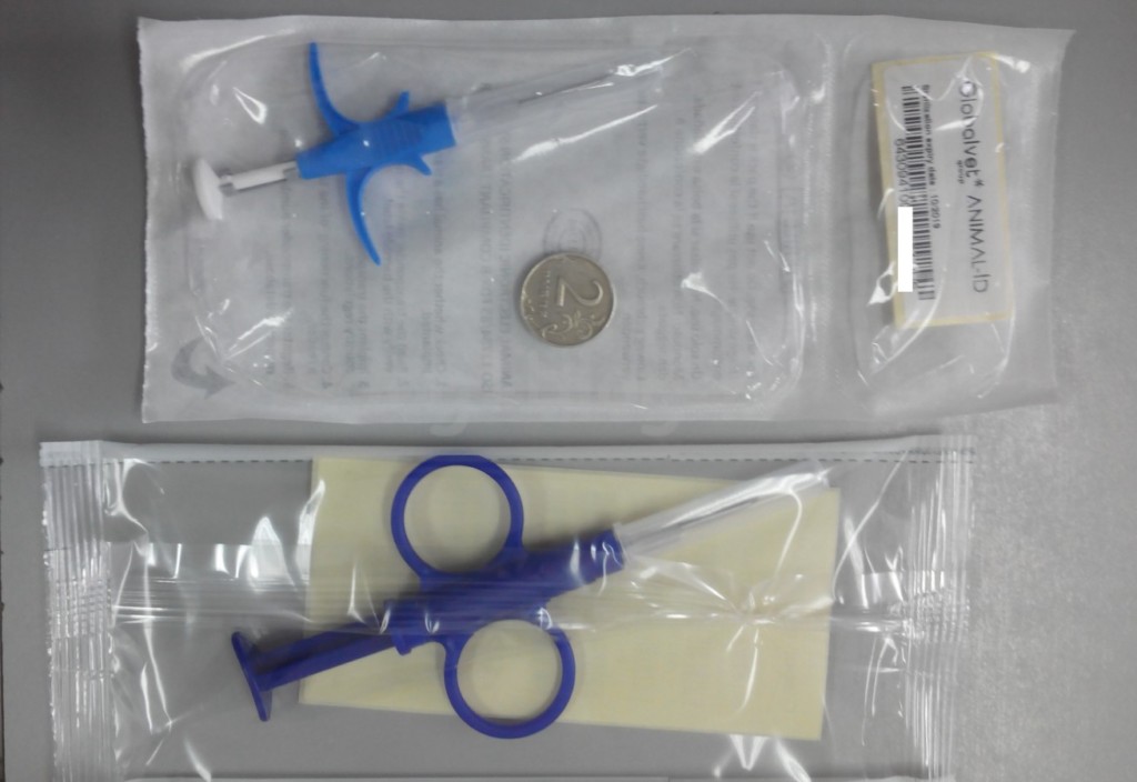 Капсула с чипом стерильная и продается в запаянном виде внутри специального шприца. Транспондер находится в жидкости, которая облегчает введение и приживление. Материал капсулы биологически совместим с тканями животного и не вызывает отторжения.