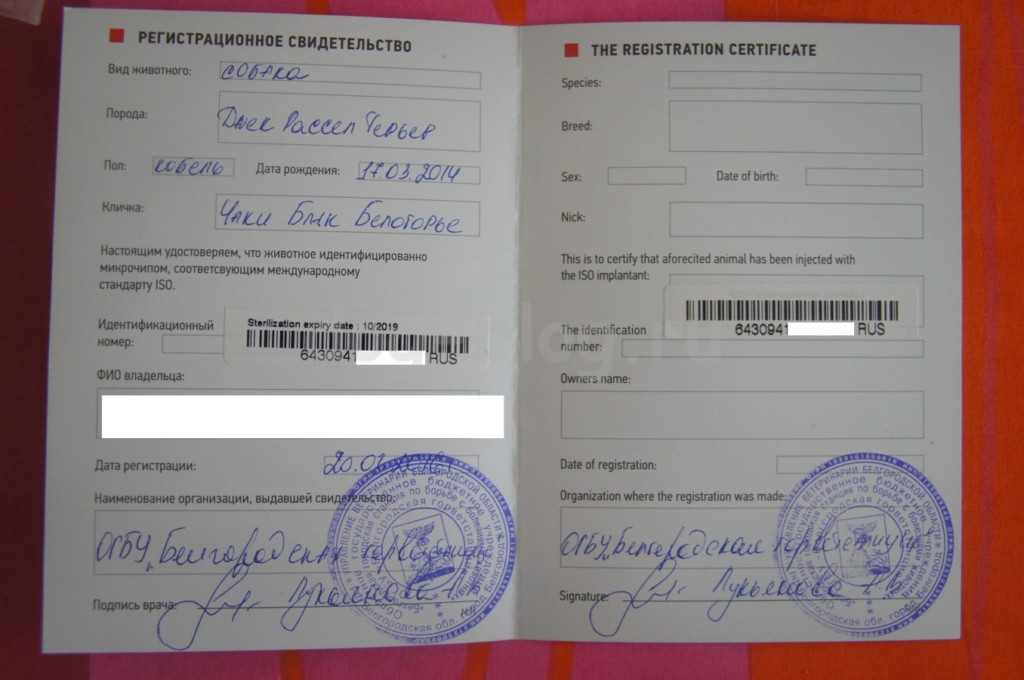 Для примера покажу вам клеймо нашего джек рассела (точнее то, что от него осталось к полутора годам жизни собаки).