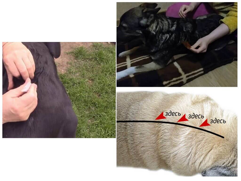 - Выбираются места на хребте, где животное не сможет слизать состав, который при попадании в пищеварительную систему может вызвать неприятные последствия.