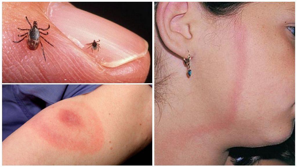 Доминирующим признаком болезни выступает образование эритемы мигрирующего характера – растущего светлого пятна, ограниченного снаружи красным ободком. Эритема появляется в той части кожного покрова, которую укусил клещ. Размеры папулы могут достигнуть 60 см, что вызывает цианотичную отёчность. На ощупь пятно горячее, сопровождается болезненностью и жжением.