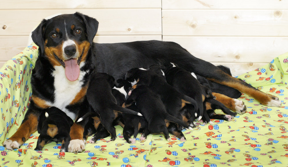 Беременность у бернского зенненхунда длится в среднем 56 дней, рождается до 10 щенков. После родов собаку обязательно нужно показать ветеринару, даже если все прошло успешно.
