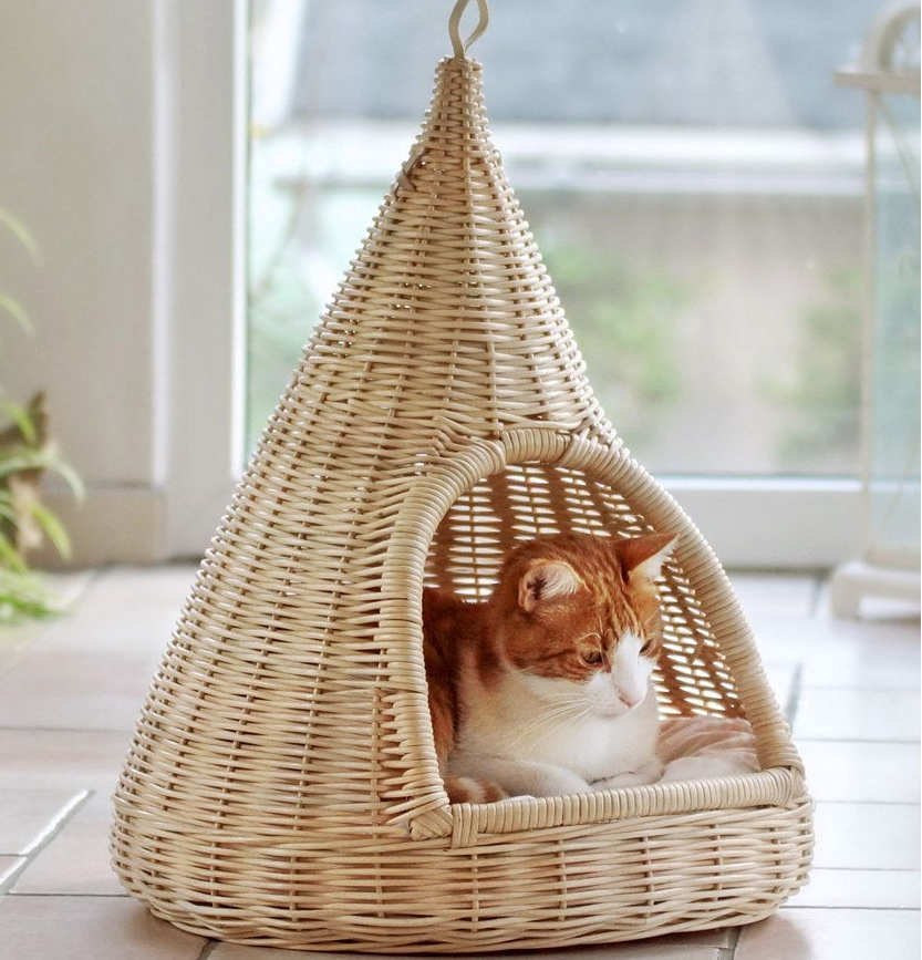 плетеные лежанки типа корзинок, либо скамеечки с подстилкой. В отличие от