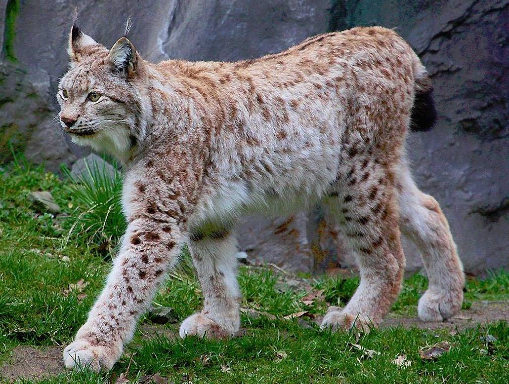 Это довольно крупная «кошка», хотя и меньше остальных представителей «тяжеловесных диких пород». Несмотря на то что рысь относится к хищникам – на людей она не охотится (более того – животное с кисточками на ушах и коротким хвостом можно даже приручить). Вес самца ~29 кг, самки – 23~25 кг. Длина туловища – до 130 см.