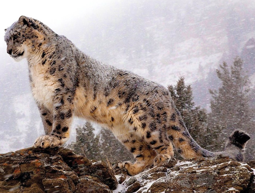 Ирбис (он же снежный барс) обитает вдали от территорий проживания людей – поэтому о животном нет полной информации (их точная численность неизвестна). Размер тела ирбиса схож с параметрами леопарда – около 65 см, а вес в среднем ~55 кг.