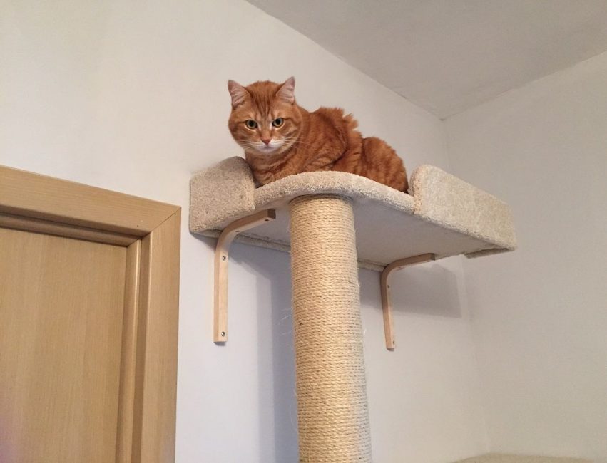 Обратите внимание: все горизонтальные поверхности должны быть не скользкими, лучше всего наклеить на них куски ковролина, чтобы кошка не подскользнулась