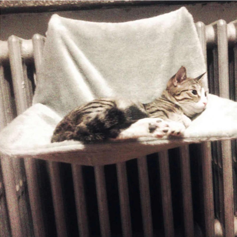 Для кошек в холодное время года особенно короткошерстных или лишенных шерсти лучшее место гамака — батарея отопления. Как сделать гамак для кошки разного вида вы можете найти в мастер-классах.