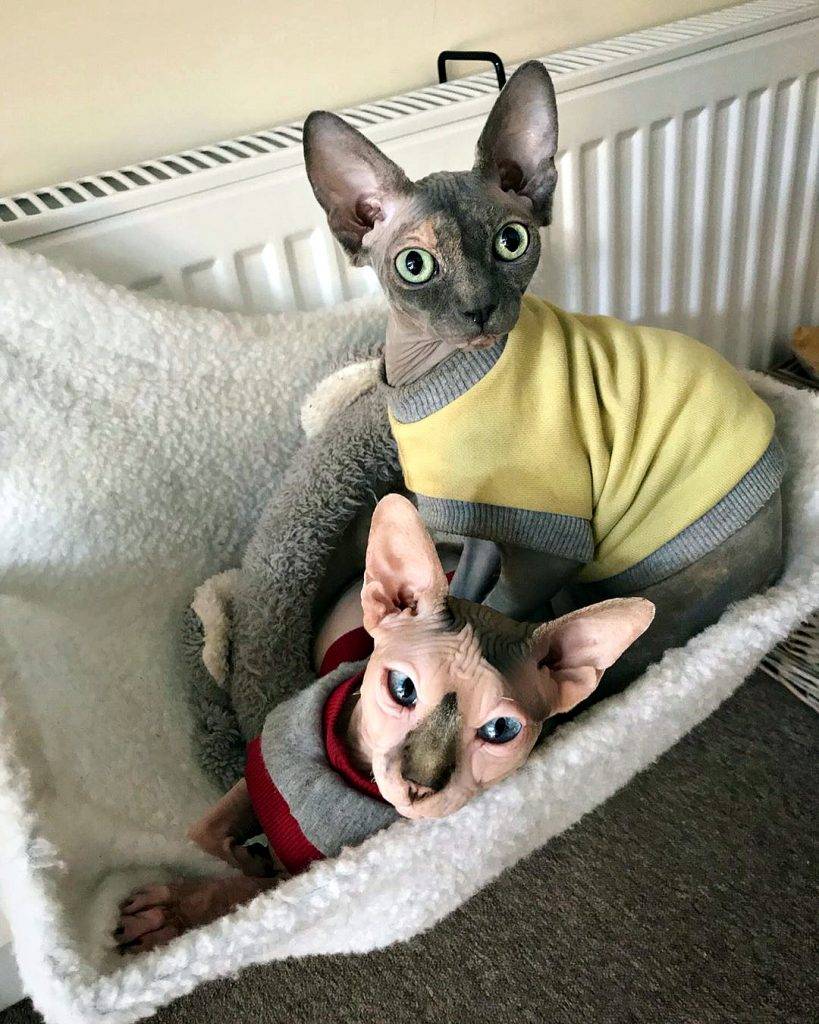 В минуты игр, приема пищи и при активных движениях сфинксы не нуждаются в особой температуре содержания, но сон их всегда проходит в тепле: многие кошки любят спать под одеялом, прижавшись к хозяину.