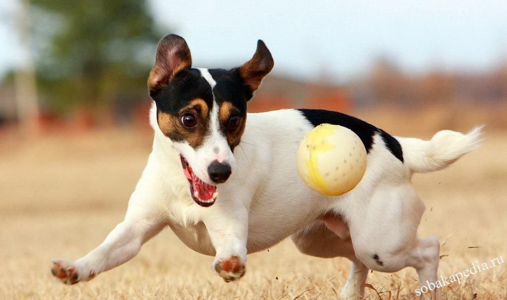 Прогулки с джек-рассел-терьером имеют обыкновение превращаться в догонялки. Прогулка с поводком сохранит нервы и силы. Собака любит подвижные игры с мячом.