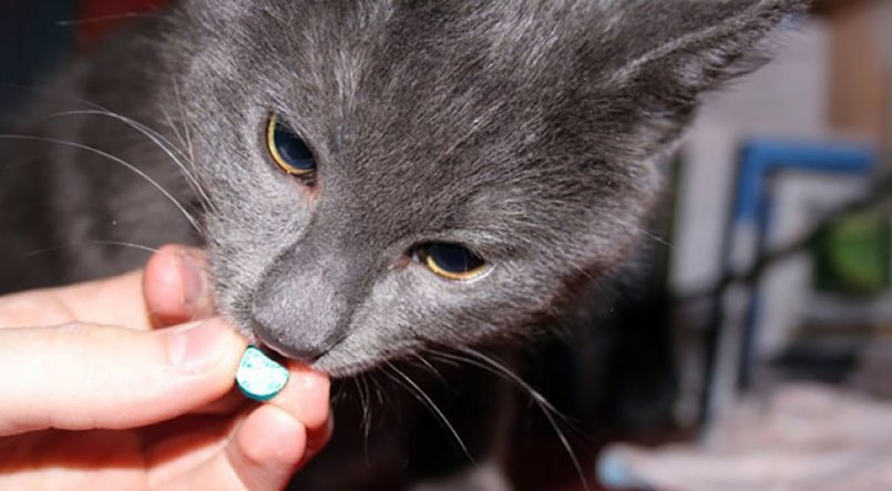 В воде таблетки не растворяются, поэтому их можно просто положить на корень языка животного целиком, или растереть и добавить в пищу при кормлении.