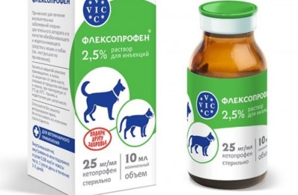 Флексопрофен для собак результативен при лечении воспалительных явлений с болевыми ощущениями. При внутримышечном введении предельная концентрация кетопрофена достигается в течение получаса. Лекарство выводится через почки.