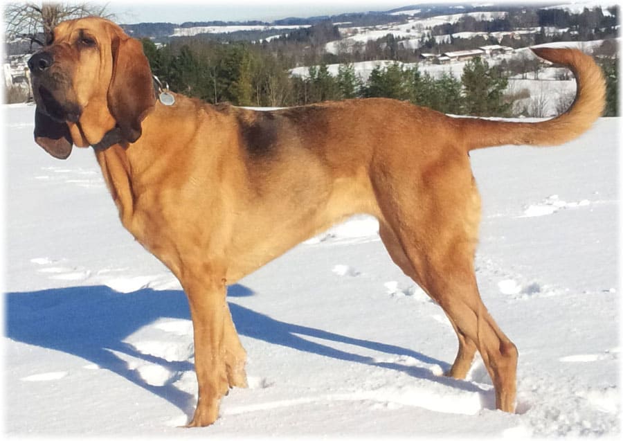 - Общий вид: гармоничен, крепкий костяк, хорошая мускулатура, самая мощная из гончих.
