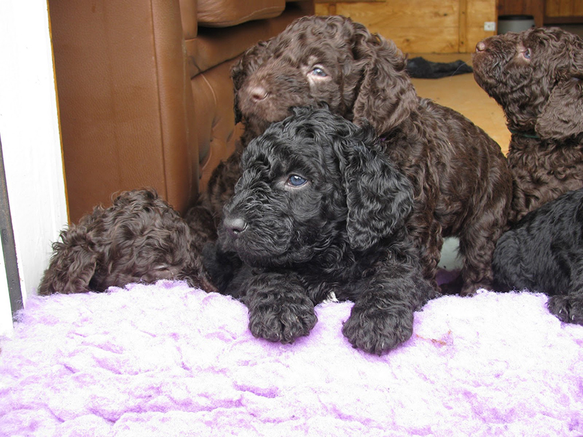 - Глаза овальные, средние. Посажены широко и чуть косо. Согласно стандарту, водяная собака может иметь черный, белый и коричневый окрасы (или их сочетания).