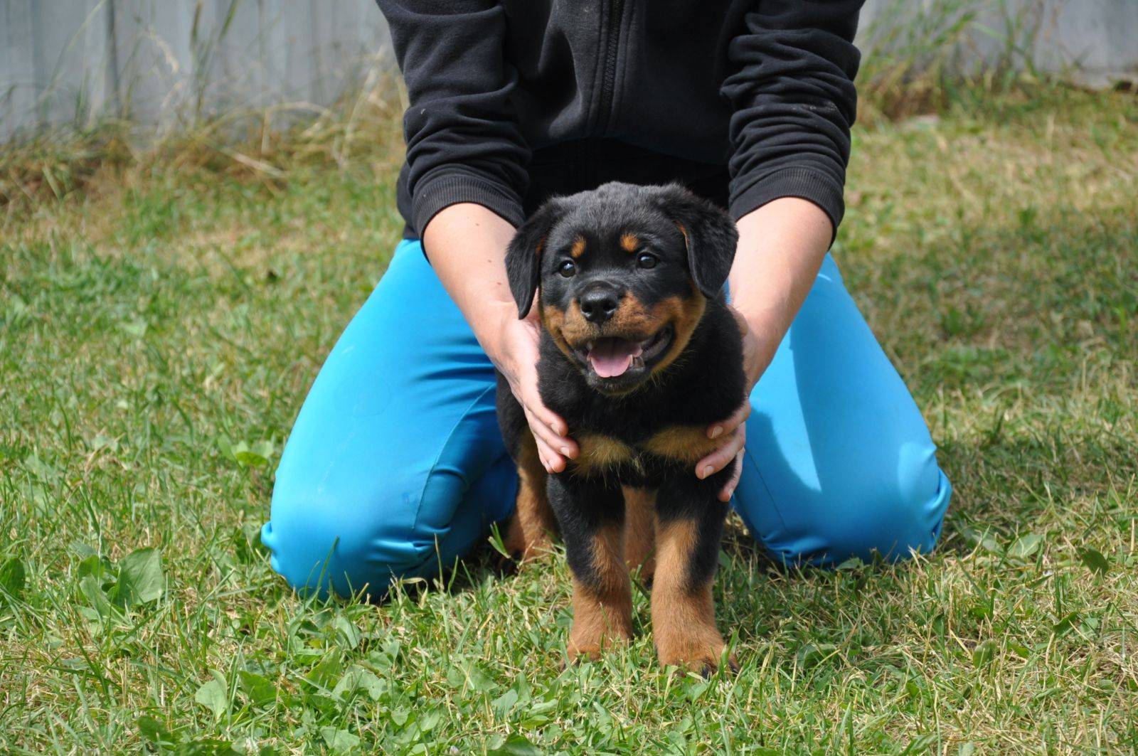 Ротвейлер — собака позднего взросления. Не требуйте от него в 6 месяцев такой же прыти, как от терьера — ротвейлер еще “сыроват”, его костяк формируется, и свое он еще нагонит. А вот чрезмерная нагрузка с прыжками сейчас для него нежелательна.