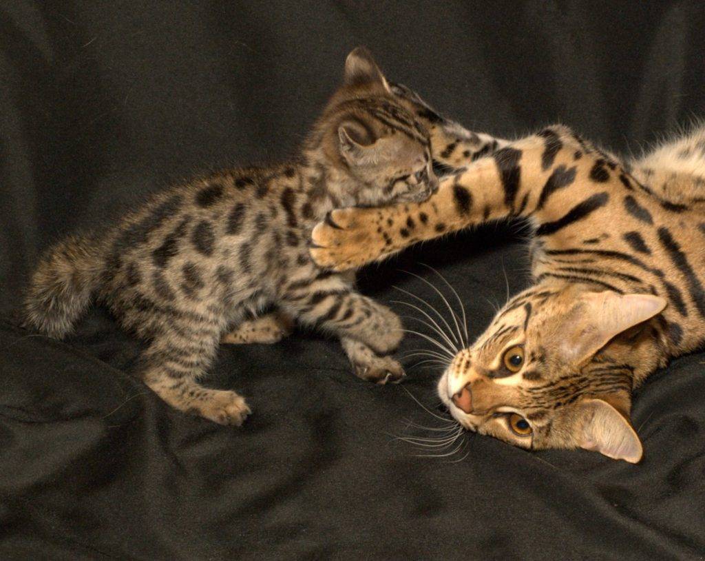- бенгальская кошка: леопард в миниатюре, который вполне соответствует повадкам своих диких предков.Бенгальцы обожают играть и исследовать все новое;