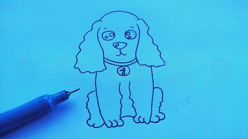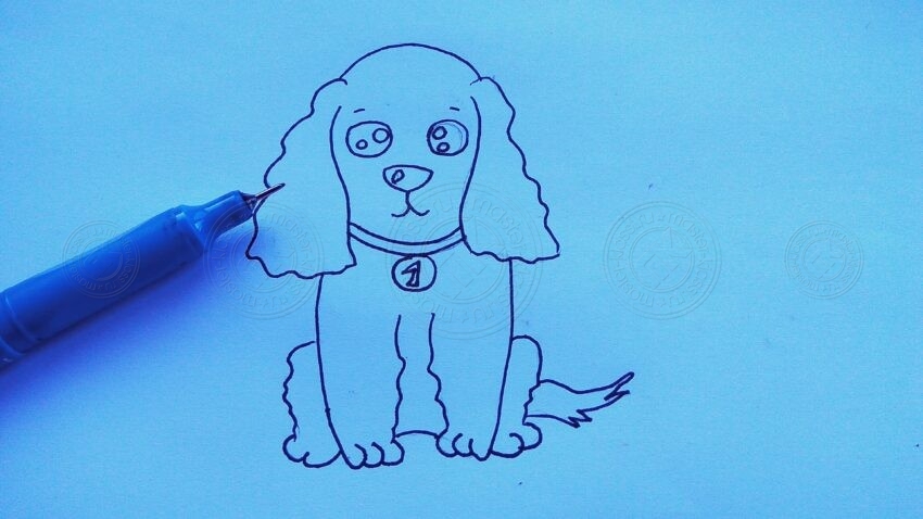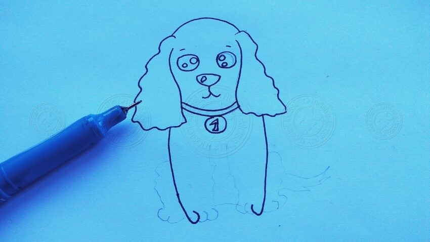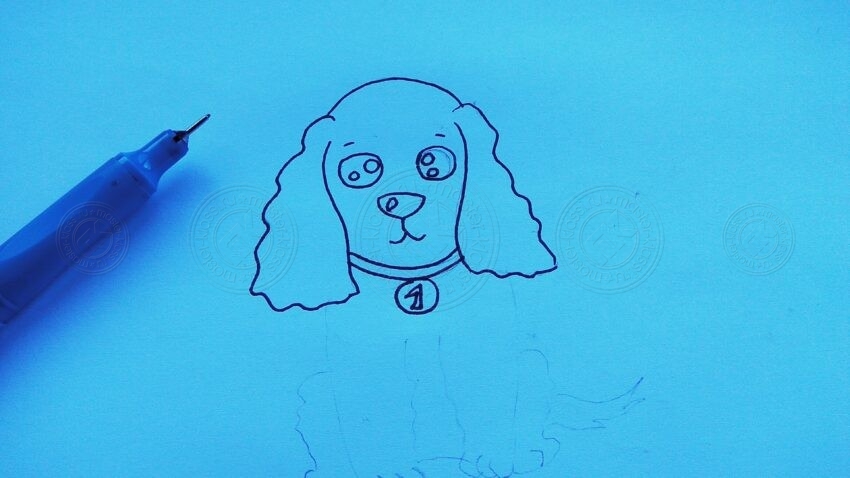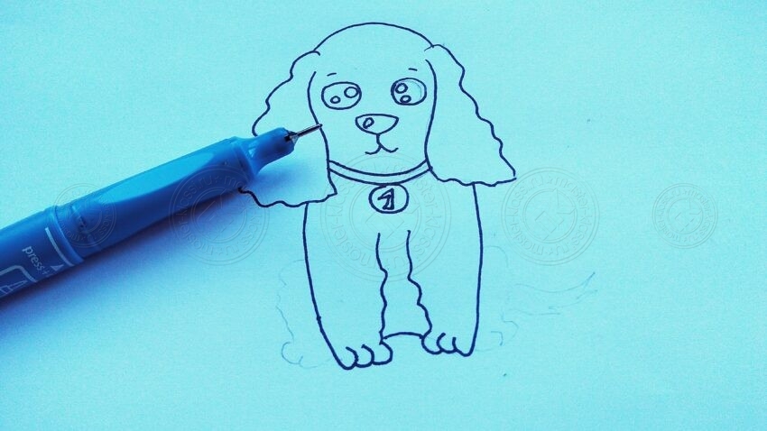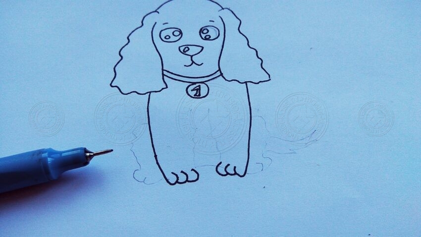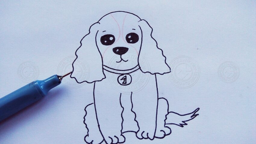 Ещё раз проверьте ничего ли вы не забыли дорисовать, а после этого сотрите все вспомогательные линии и фигуры. У вас должен остаться только контур вашей собаки.