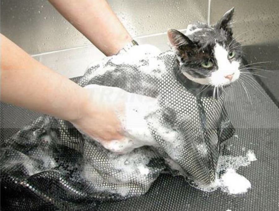 Не у всех получается помыть кошку без эксцессов, и тогда на помощь приходят современные приспособления.