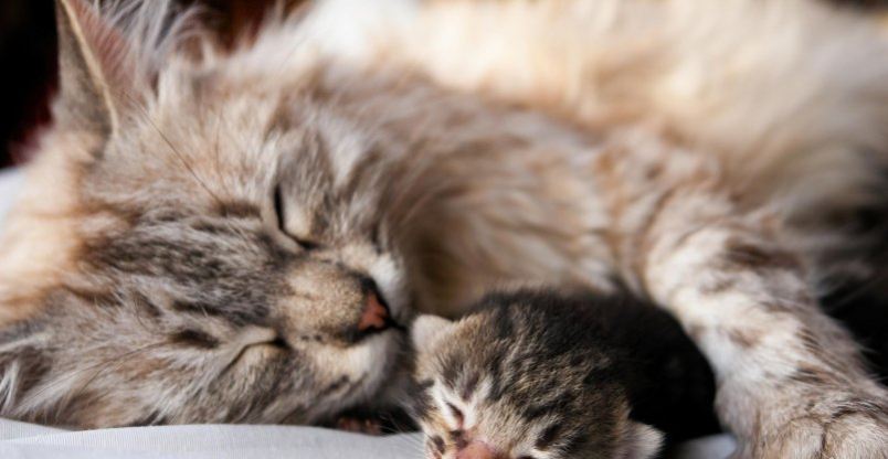 Если не хочется проверять, будет мамочка протестовать или нет, стоит на время осмотра котенка ее куда-нибудь изолировать.