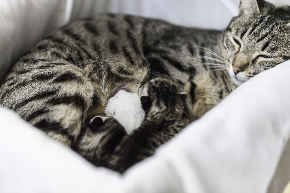 Роды считаются законченными, когда схватки отсутствуют около 2 ч. Кошка выглядит спокойной, живот спадает и становится мягким. Малыши в это время активно сосут молоко.