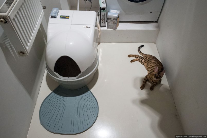 Единственно, что потребуется от хозяина смышленого кота – нажать кнопку сливного бачка после того, как он закончит свои туалетные дела. Особо талантливые хвостатые ученики даже подают знак о том, что настала пора это сделать.