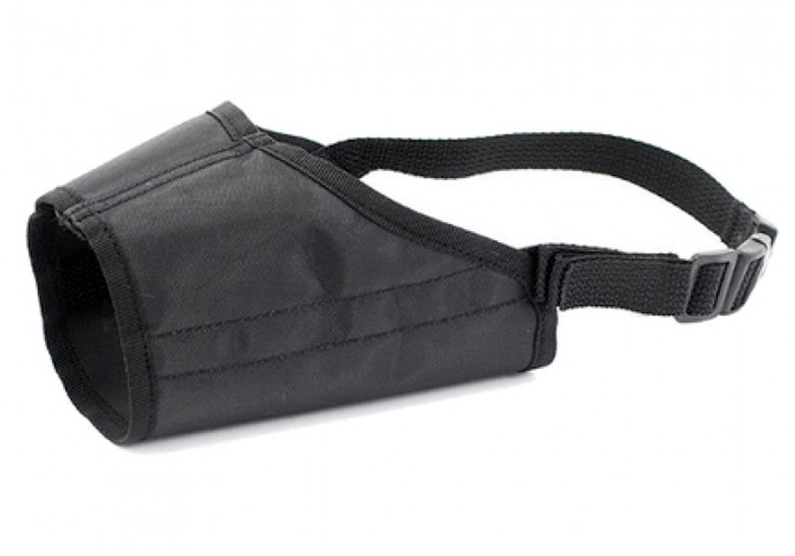 Модель представляет собой сшитую нейлоновую ткань, которая плотно облегает морду собаки. Нос и пространство вокруг него остаются открытыми.