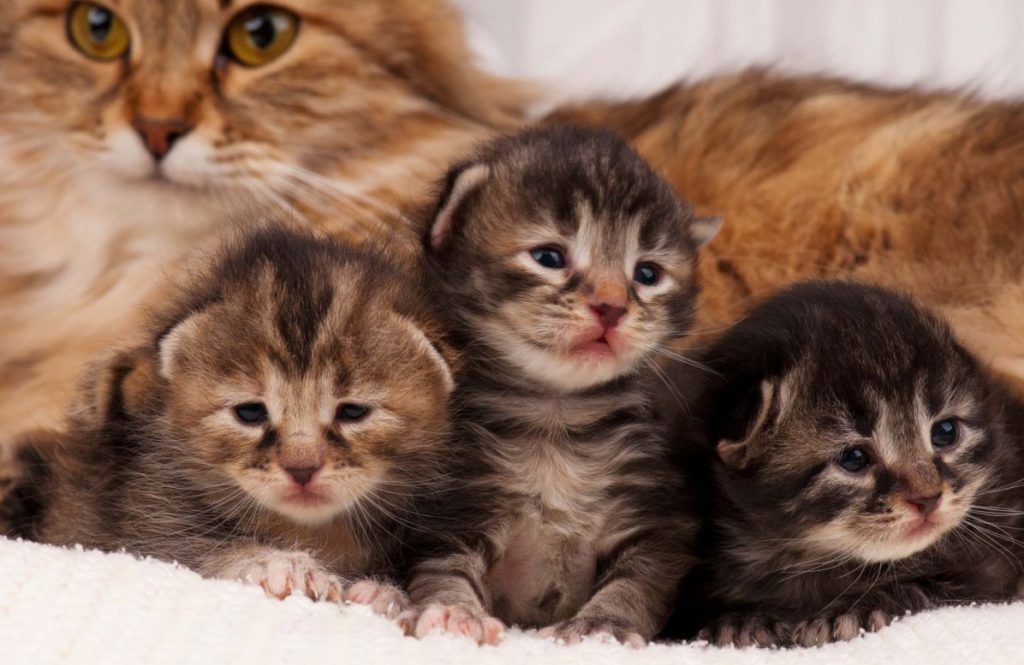 Обычно кошки рожают самостоятельно, но нужно уметь оказать им помощь в случае необходимости. Новоиспеченные четвероногие мамы, которых нужно изолировать от других животных, ухаживают за малышами и учат их самостоятельности. Если она по каким-либо причинам не может кормить детенышей, они переводятся на искусственное вскармливание готовыми смесями для выкармливания котят, сухими смесями для детей или самостоятельно приготовленной болтушкой. Делать это надо каждые 2 часа. 4-недельный возраст – оптимальный момент для первого прикорма.