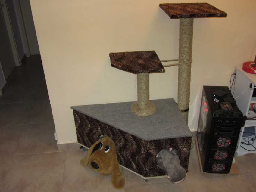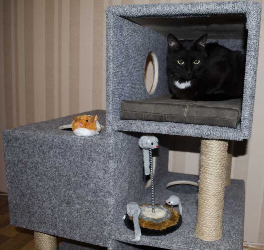 Не менее важно – это надежно закрепить всю конструкцию, тем более, если ею пользуется не один кот или кошка. Их игры могут привести к тому, что вся конструкция может завалиться и чем она выше, тем больше такая вероятность