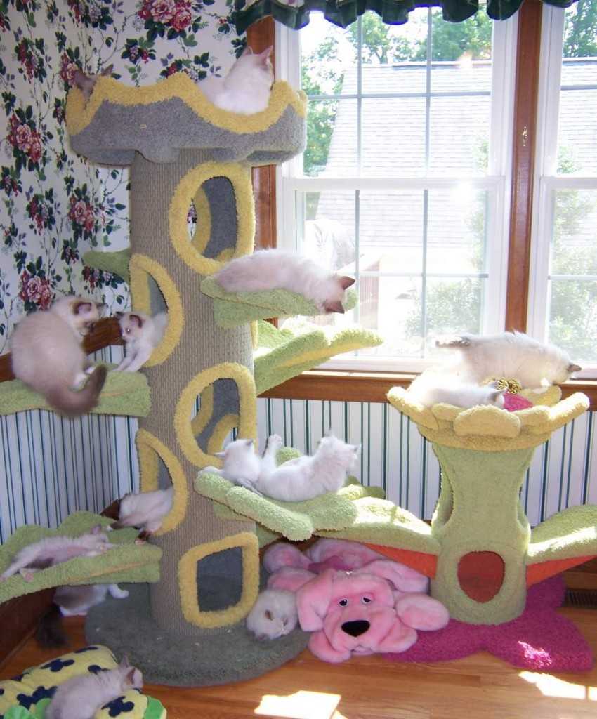 Чтобы ей было удобно туда взбираться, поставьте рядом небольшую лесенку, обтянутую пеньковым или джутовым шпагатом.