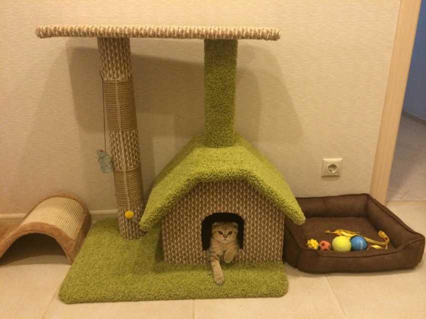 Настоящий кошачий развлекательный комплекс приобретается, изготавливается самостоятельно, если в квартире, частном доме проживает более двух кошек. Здесь они будут отдыхать, играть, общаться. Домик оборудуется несколькими площадками на стойках, выполняющих роль когтеточек, лесенками, гамаками, лазалками, игрушками, болтающимися на веревочках, может иметь вид стеллажа, обитого тканью.