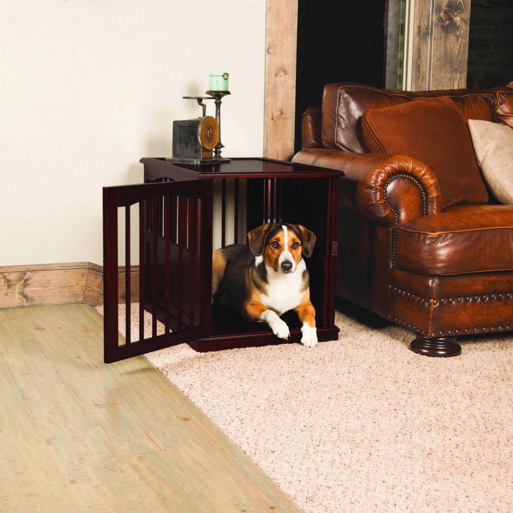 Еще больше порадовать любимца может специально для него сделанная конура. Она проста в изготовлении – достаточно перевернутого ящика. При более серьезном подходе можно найти тумбочку, которая внутри и снаружи обита тканью. Такое решение станет отличным дополнением в интерьере любой комнаты, ведь «крышу» такого домика можно использовать как еще одно место для хранения мелочей.