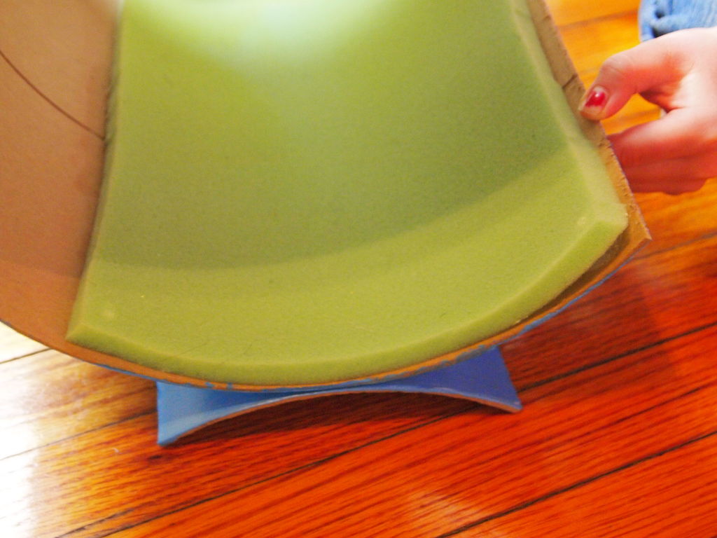 Поролоновые детали накладывают на картонные, фиксируют степлером, можно пришить крепкими нитками или использовать клей.