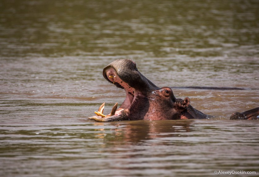 6. Мощнейшей челюстей обладает бегемот. И хотя он питается в основном травой, мощная челюсть нужна бегемоту для битв с другими бегемотами и для защиты от хищников. Говорят, что они способны перекусить на две части огромного крокодила. Сила укуса этих толстячков достигает 125 атмосфер.