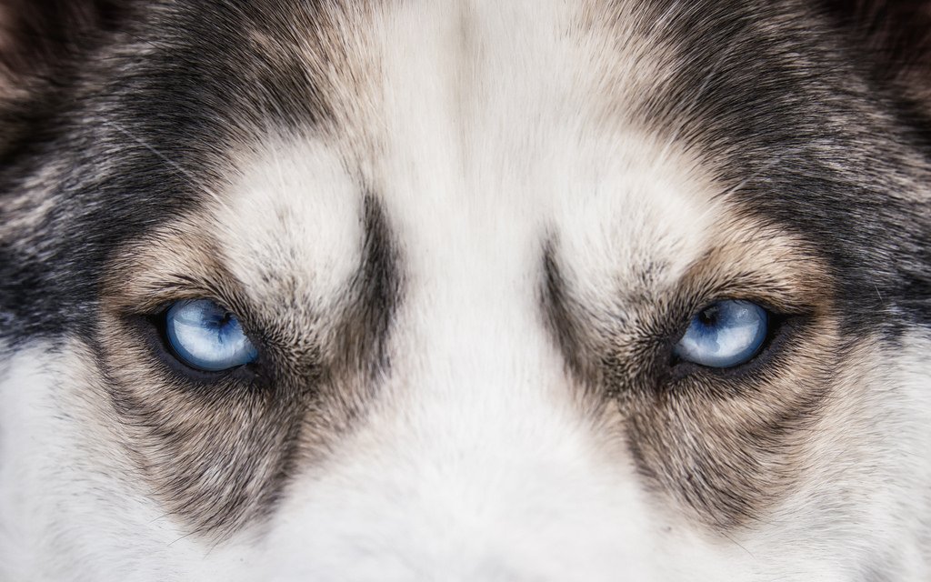Глаза «сибиряков» миндалевидной формы, немного скошены к носу, но смотрят прямо. Цвет радужки по стандарту не принципиален: от темно-карих до светло-голубых глаз. Нередко у хаски встречается гетерохромия — разный цвет глаз, один — карий, другой — ярко-голубой.