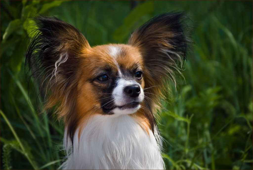 Это миниатюрные элегантные собачки ростом 20 – 27 см, весом 2 – 4 кг. Они впервые появились во Франции, где стали фаворитами при королевском дворе. Отличительный внешний признак папильона – крупные, прямые, чуть расставленные в стороны уши с длинными очёсами. По форме они напоминают крылья бабочки, отсюда название papillon, в переводе с французского – бабочка.