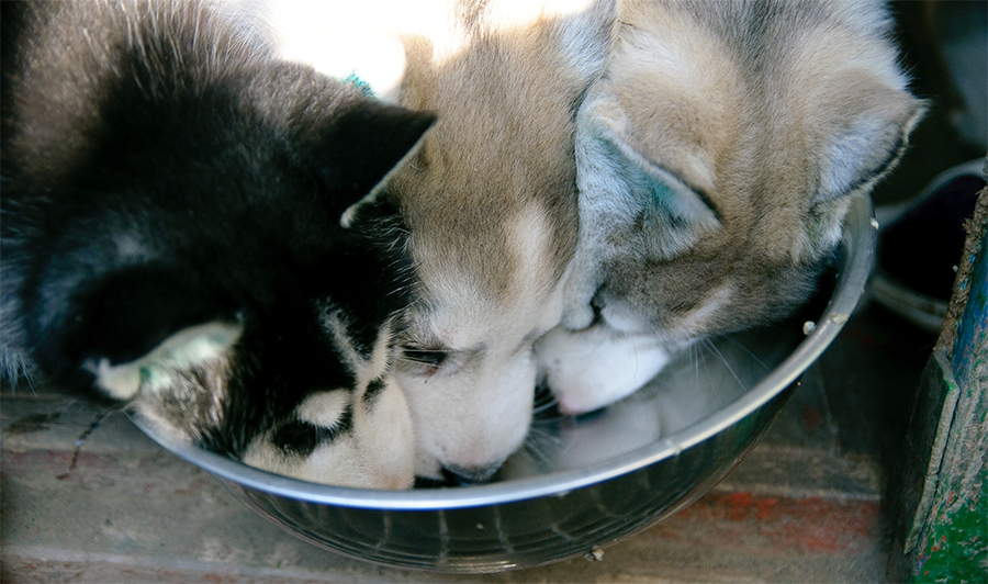 Нельзя кормить собак этой породы молоком, куриными костями, картофелем, копчеными и острыми продуктами. Мясо хаски дают сырым, нарезанным на небольшие кусочки. Нельзя его перемалывать и давать в виде фарша. Каши нужно не варить, а запаривать кипятком, чтобы крупа оставалась в полусыром виде. Так же в полусыром виде дают этой породе овощи. Читайте подробнее в отдельной статьи как и чем кормить хаски.