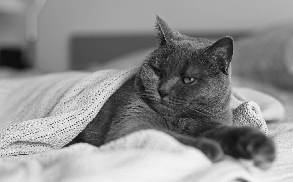 Короткошёрстный кот может быть только голубых оттенков от светлого до тёмного серого тона.