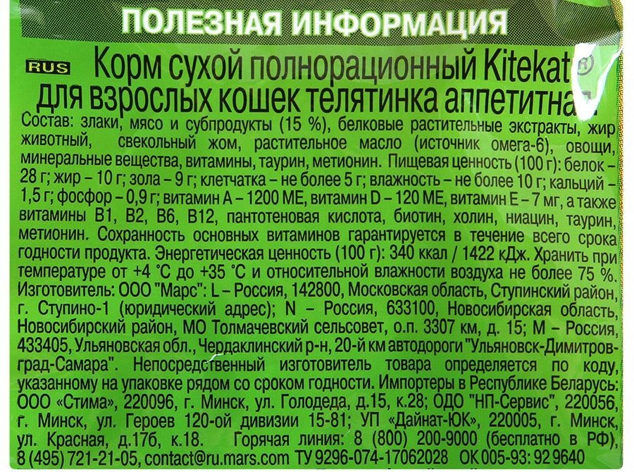 Производитель гарантирует, что формулы кормов Kitekat идеальны, потому что они долго производились специалистами – ветеринарами и диетологами и оптимально сбалансированы. Что касается состава, то туда входят: