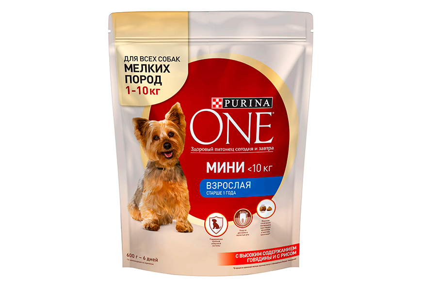 Для разбора возьмем корм «Purina One Мини Взрослая с говядиной и рисом». Данный рацион рассчитан на совершеннолетних собак маленьких пород (до 10 кг). На первом месте в составе находится «сухой белок птицы домашнего происхождения», затем следуют пшеница и кукуруза, только потом говядина (14%). Рис (4%) находится аж на 6 месте. Помимо прочего, в состав входит глутамат натрия, пропиленгликоль и соевая мука.