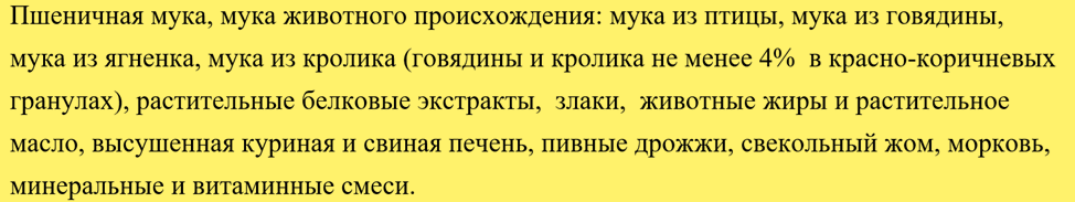 Производитель предлагает для взрослых питомцев кормосмесь следующего состава: