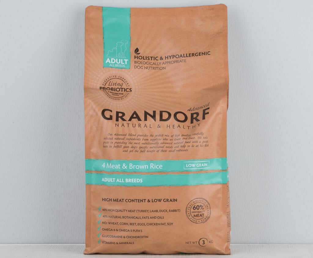 Наибольшей популярностью пользуется корм Grandorf Indoor четыре мяса с рисом. В его составе четыре вида мяса в сочетании с рисом. Эти компоненты обеспечивают взрослых животных зарядом энергии, бодрости и крепким здоровьем. При приготовлении используется филе крольчатины, утятины, ягненка и индюшатины. Все это комбинируется с цикорием, розмарином, льняным маслом, рисом.