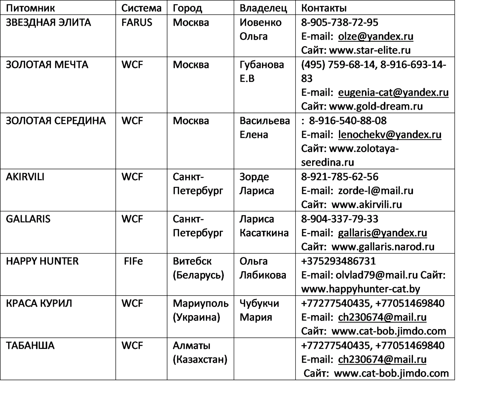 | Характеристики кошки | Примечания | |