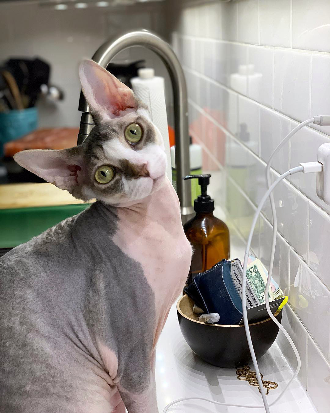 Именно кошечка Punkie была сведена с котом породы девон-рекс. Результатом вязки стали бесшерстные котята в первом поколении.