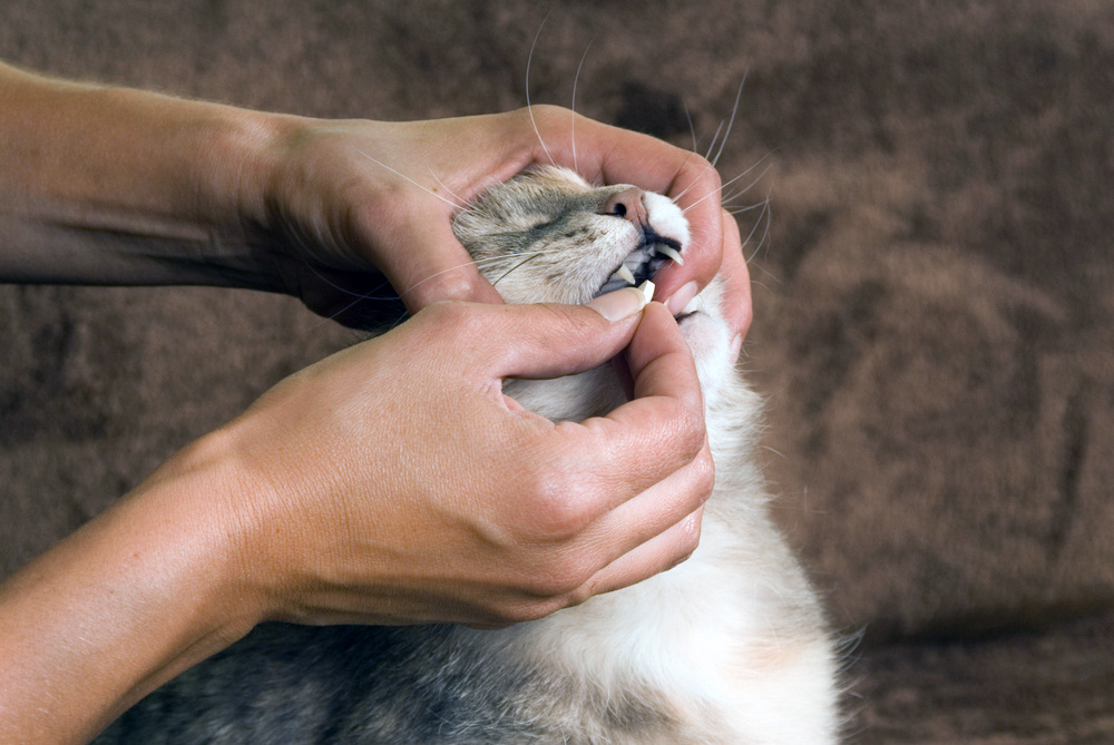 - Если препарат дается напрямую в рот питомцу, то следует обезопасить руки и лицо. Желательно обмотать лапы животному тряпкой, а процедуру проводить с напарником.
