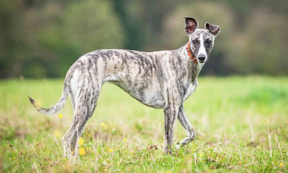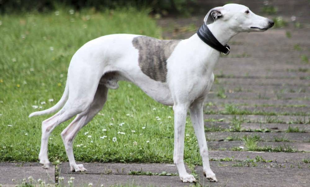 Выведена в 19 в. в Великобритании для участия в бегах и охоты на кроликов. Имеет элегантный тонкий профиль с аркой в зоне поясницы. Грудь у уиппетов очень глубокая, живот всегда подтянут. Высота в холке самок – 44-47 см, самцов – 47-51 см. Голова хорошо сужается к носу, сухая, череп плоский сверху, широкий между глазами, стоп почти незаметен.