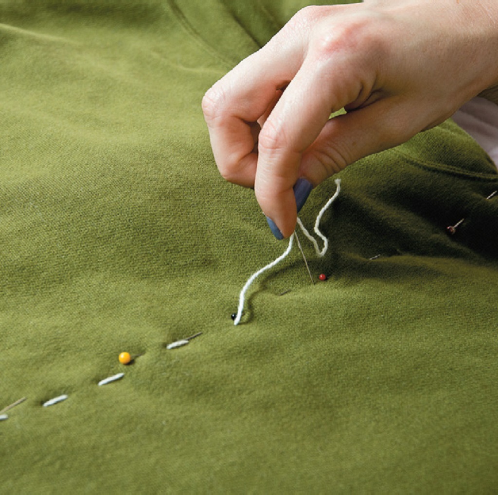 На втором этапе нужно вывернуть изделие обратно. Между подмышками прошить полукруг над уровнем груди.