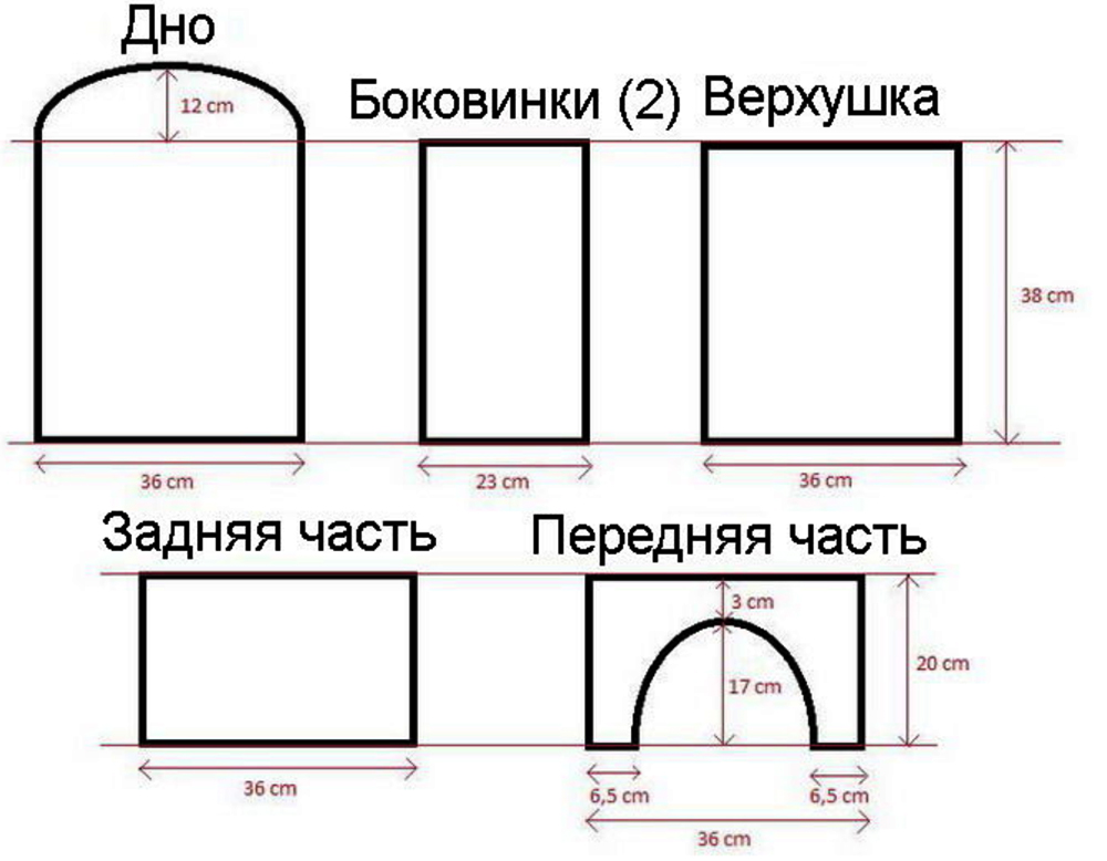 Рисуем макет. Размеры определяем по величине животного. Оптимальная ширина боковинки – 20 см.