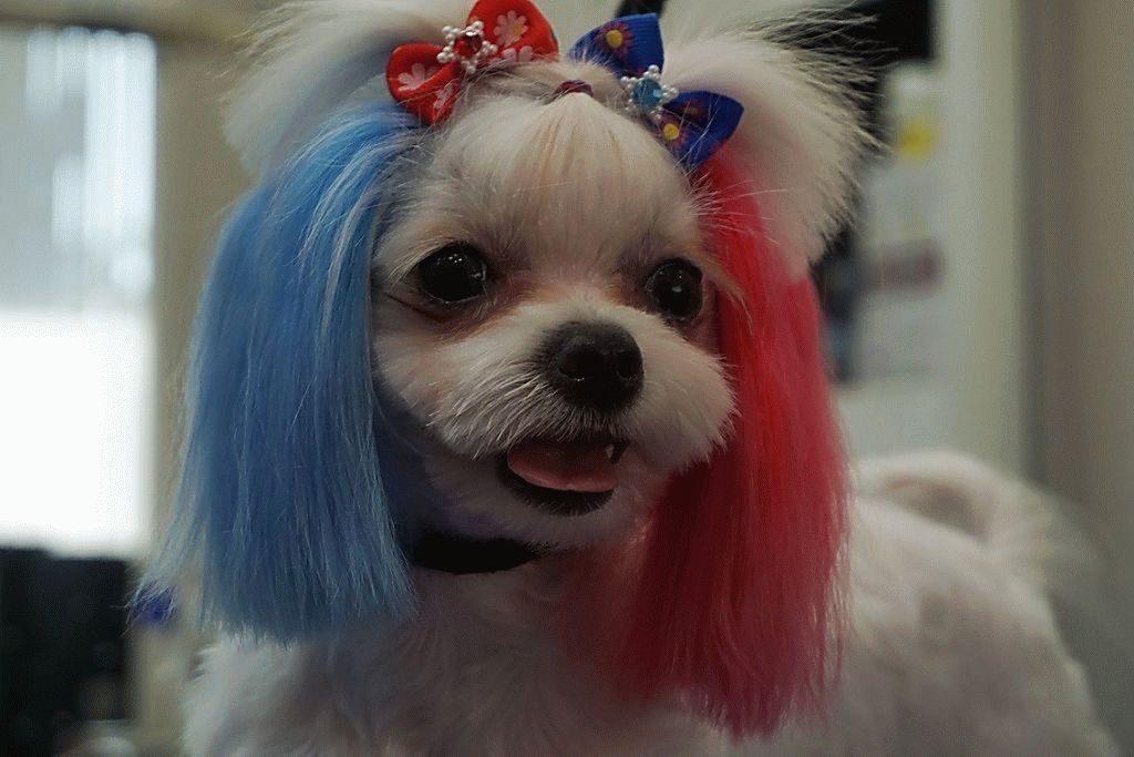 Если модный собачий образ кажется владельцу недостаточно эффектным, то к нему можно добавить пару цветных прядок или стразов.