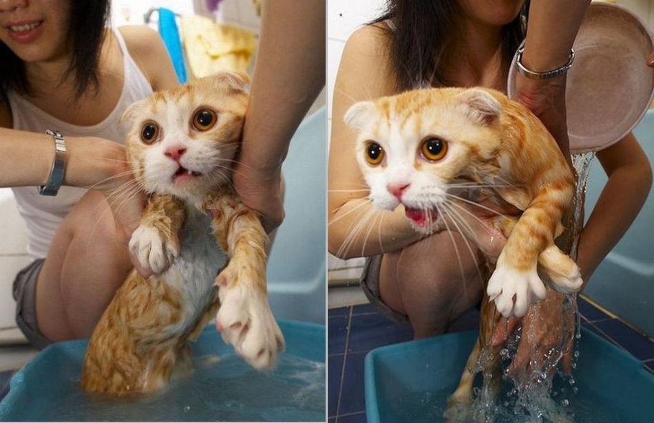 Как купать кота, который боится воды?